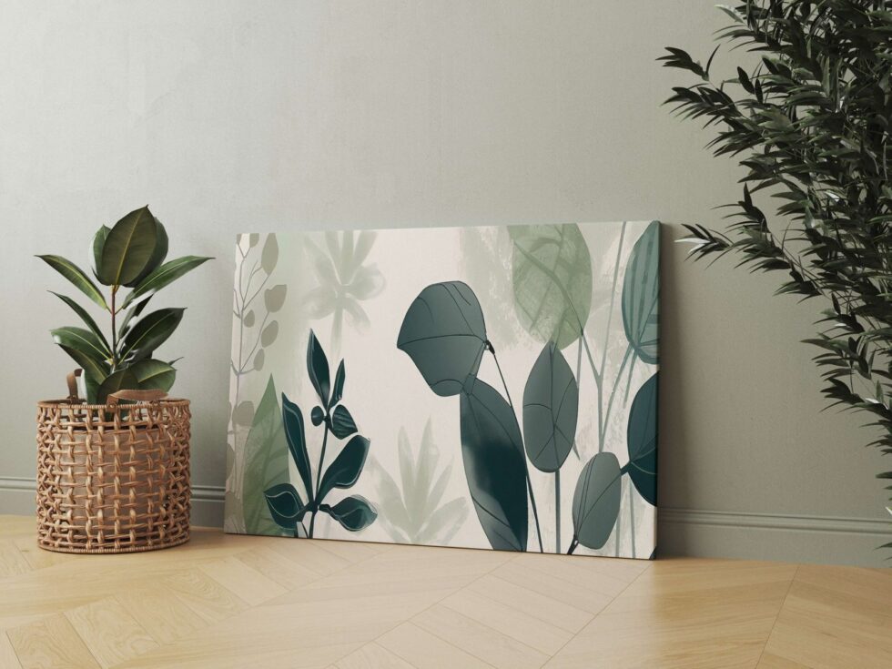 Serene mountain lake scene framed canvas for tranquil bedroom walls.