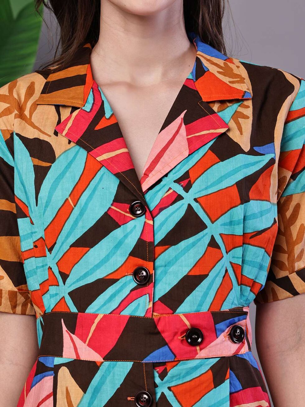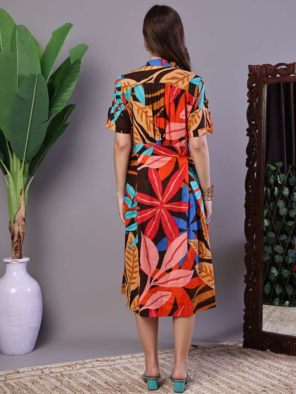 Be the first to review “Women’s Leaf Print Button-Down Cotton Midi Dress”