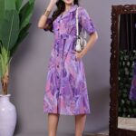 Effortlessly stylish dress with a vibrant abstract print, tie-up shoulder straps, and a chic high-low handkerchief hemline ? perfect for casual days or evening gatherings.